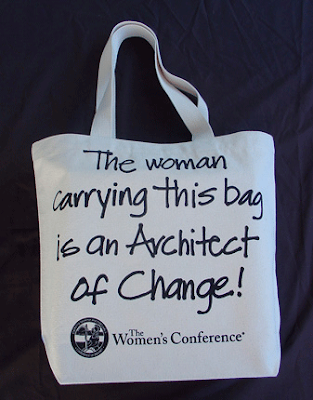 Planet Saver Sacks (also featured yesterday) can customize its eco-friendly canvas totes, like this one for Maria Shriver's Women's Conference. The manufacturer exhibited at the 2009 summer gift show in Chicago.