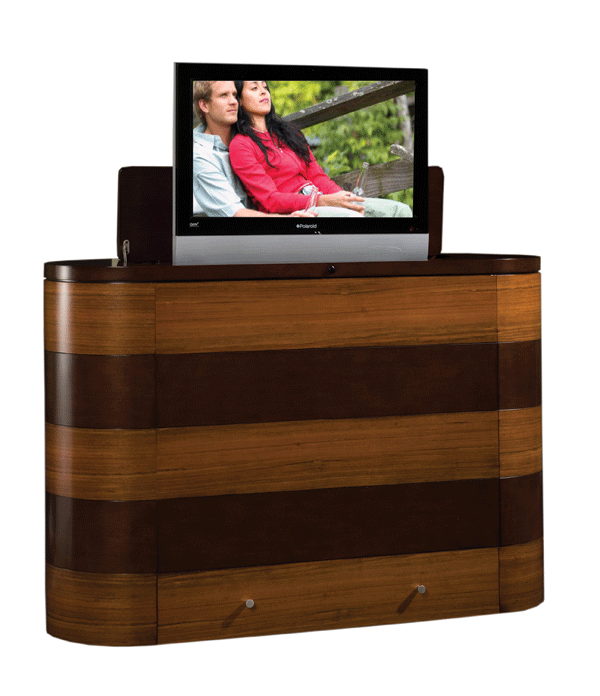 The Laredo (top) can accommodate a television measuring 33 inches wide, 5 inches deep and 37 inches tall. The Alante (above) accommodates a set measuring 33 inches wide, 5 inches deep and 23 inches tall. They will be available beginning in April 2010.